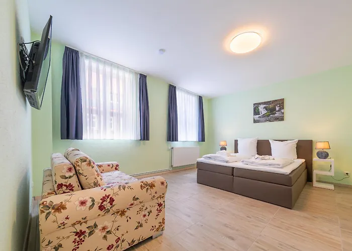Эти апартаменты расположены всего в 550 метрах от национального парка Гарц и рядом с Харцером Шмальшпурбан. Ближайшая автобусная остановка "Wernigerode, Hauptbahnhof" находится в 100 метрах, а St. Johannis-Kirche Wernigerode - на расстоянии 450 метров. До Музея авиации и техники Вернигероде можно доехать за пару минут.